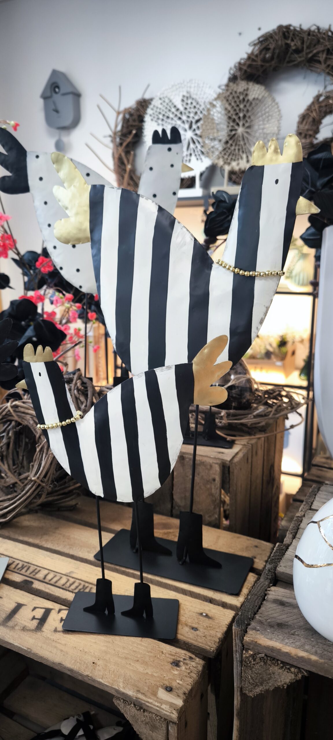 Diese elegante dekorative Huhn aus Metall von Baden Collection ist ein stilvoller Blickfang für jedes Zuhause und jeden Garten. Das moderne schwarz-weiße Streifenmuster wird durch edle goldene Elemente harmonisch ergänzt und verleiht der Figur einen exklusiven Charakter.