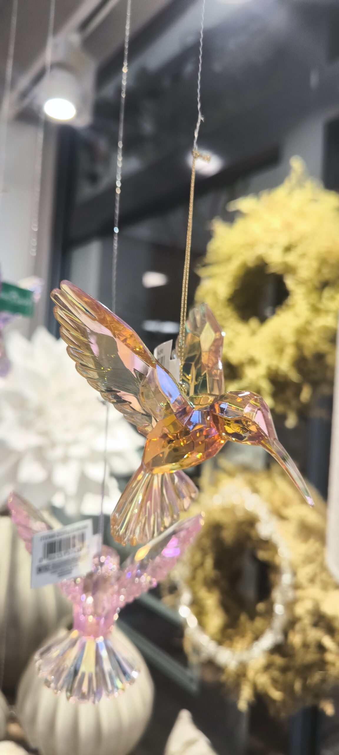 Kolibri aus Acryl von Kurt S. Adler (10 × 10 cm) in Orange – lebendiger, funkelnder Dekoanhänger mit filigranem Design, ideal für Fenster, Baum oder farbenfrohe Akzente.