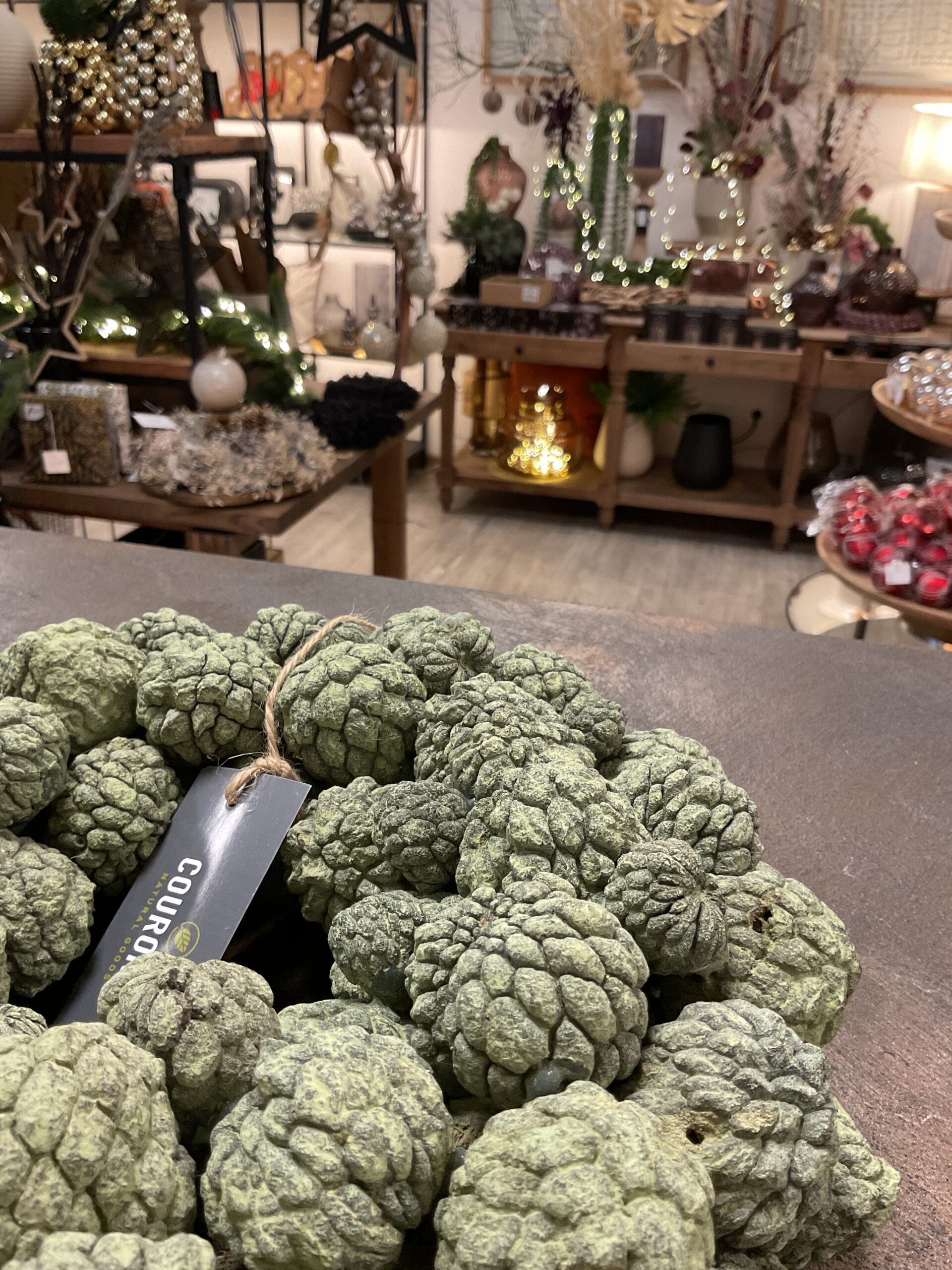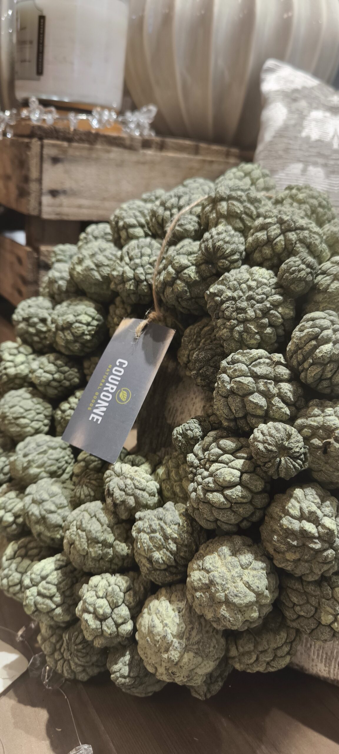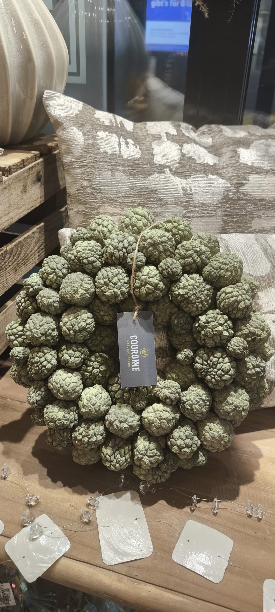 Der grüne Kranz Atafruit Couronne mit einem Durchmesser von 30 cm überzeugt durch seine natürliche Optik und detailreiche Verarbeitung. Die frischen Grüntöne verleihen ihm eine lebendige Ausstrahlung und machen ihn zu einem vielseitigen Dekoelement für Türen, Wände oder Tischmitten. Ob als saisonale Dekoration im Frühling und Sommer oder als stilvoller Akzent im Alltag – dieser Kranz bringt frische Natürlichkeit in jeden Raum. Ideal auch zum Weitergestalten oder Kombinieren mit anderen Deko-Elementen.