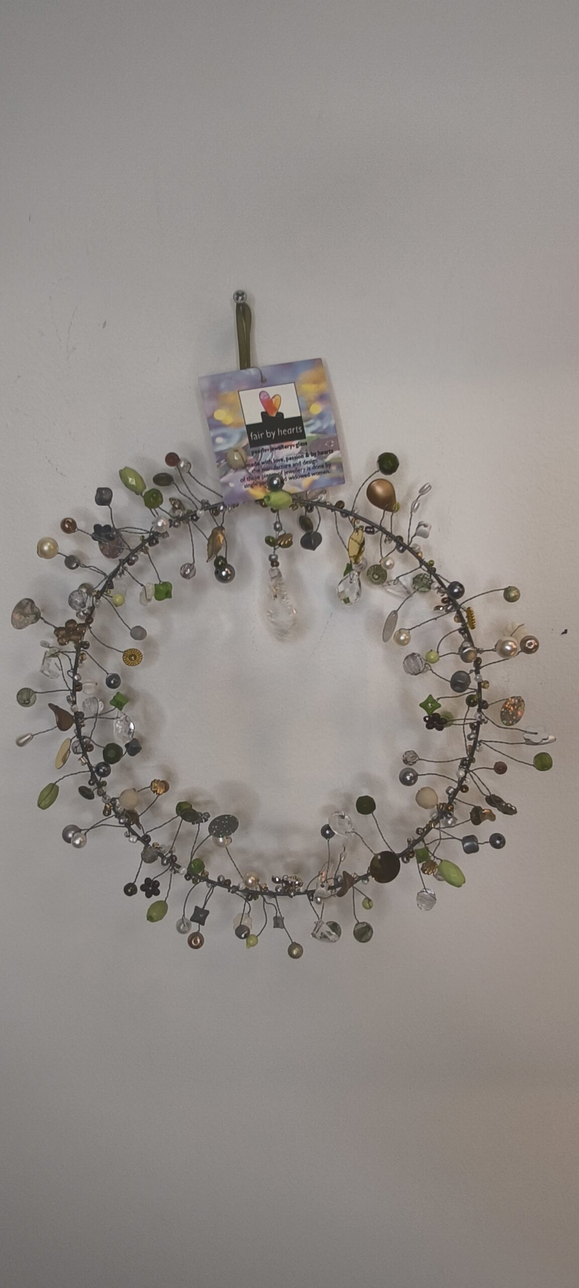 Dieser elegante Perlenkreis von Bell Arte vereint die edlen Farben Grün, Gold und Weiß in einem stilvollen Design. Mit einem Durchmesser von 25 cm eignet er sich perfekt als Wand-, Tür- oder Fensterdekoration. Die filigran gearbeiteten Perlen sorgen für ein feines Funkeln und verleihen dem Kreis eine festliche, hochwertige Ausstrahlung. Ideal für saisonale Deko, festliche Anlässe oder als stilvoller Akzent im Wohnbereich. Handgefertigt mit viel Liebe zum Detail – ein echter Hingucker in jeder Umgebung.