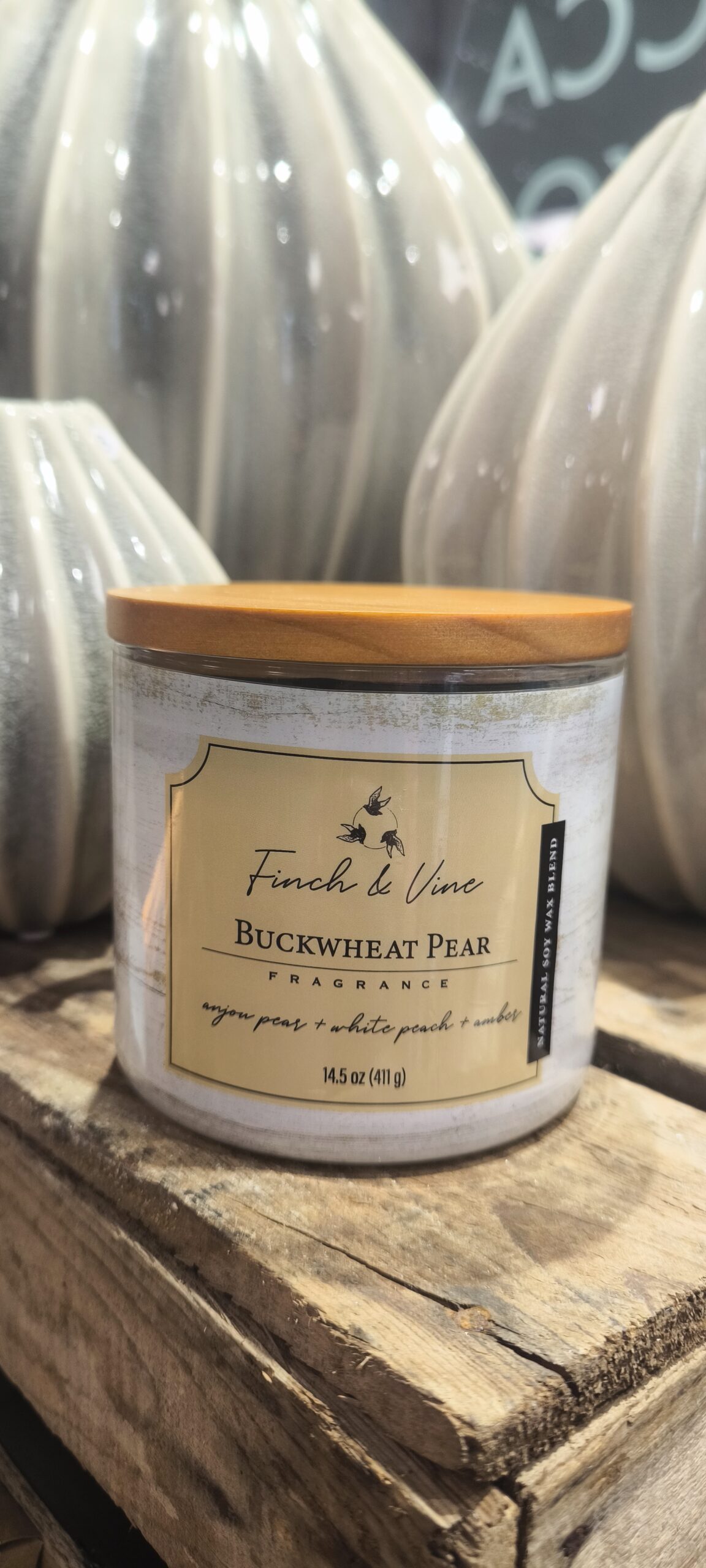 Soja-Wachs-Kerze 10 x 9 cm, 411 g, ca. 60 Stunden Brenndauer, Duft Buckwheat Pear – natürliche Duftkerze mit warmem, leicht süßem Buchweizen- und frischem Birnenaroma für eine gemütliche Atmosphäre.