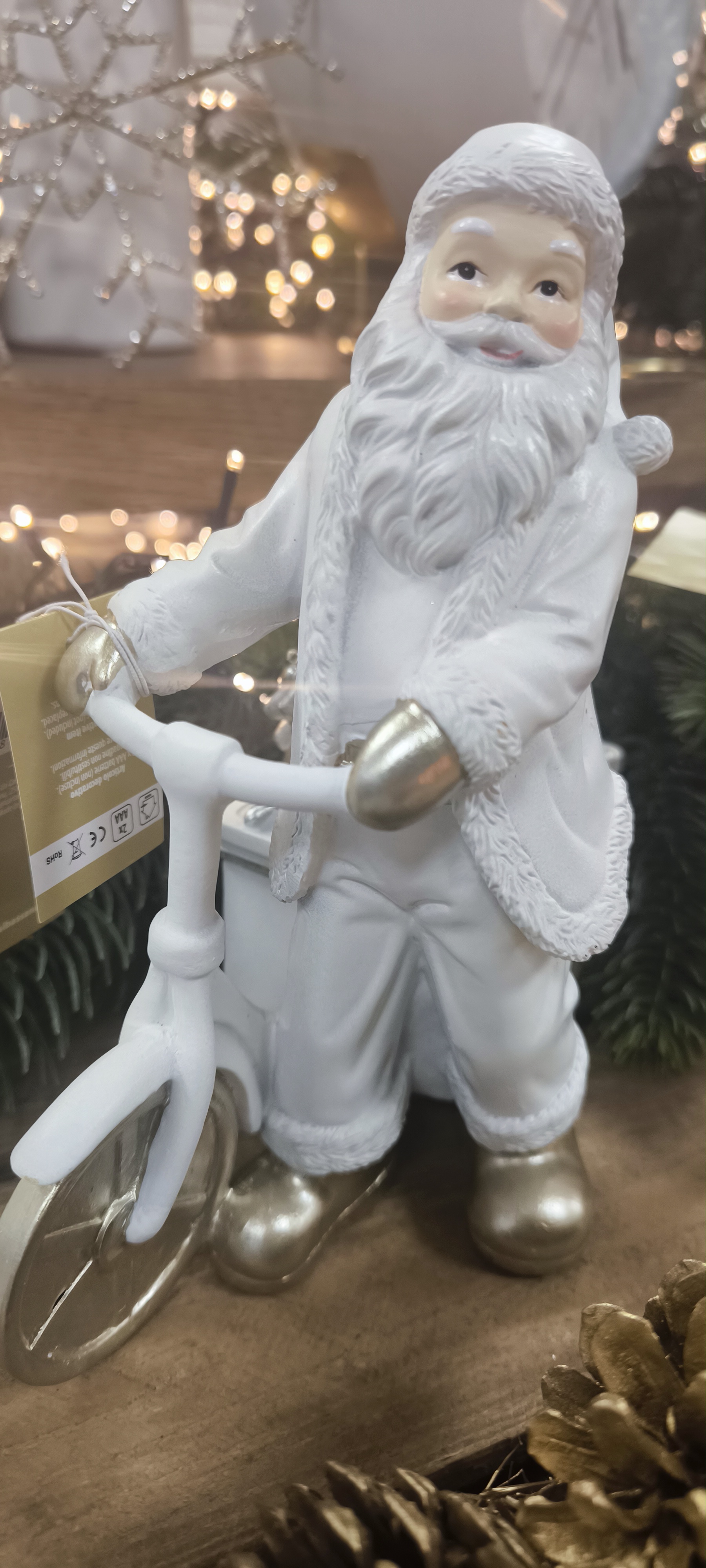 Weihnachtsfigur Santa mit Motorrad und leuchtendem Baum – von TonoSuTono