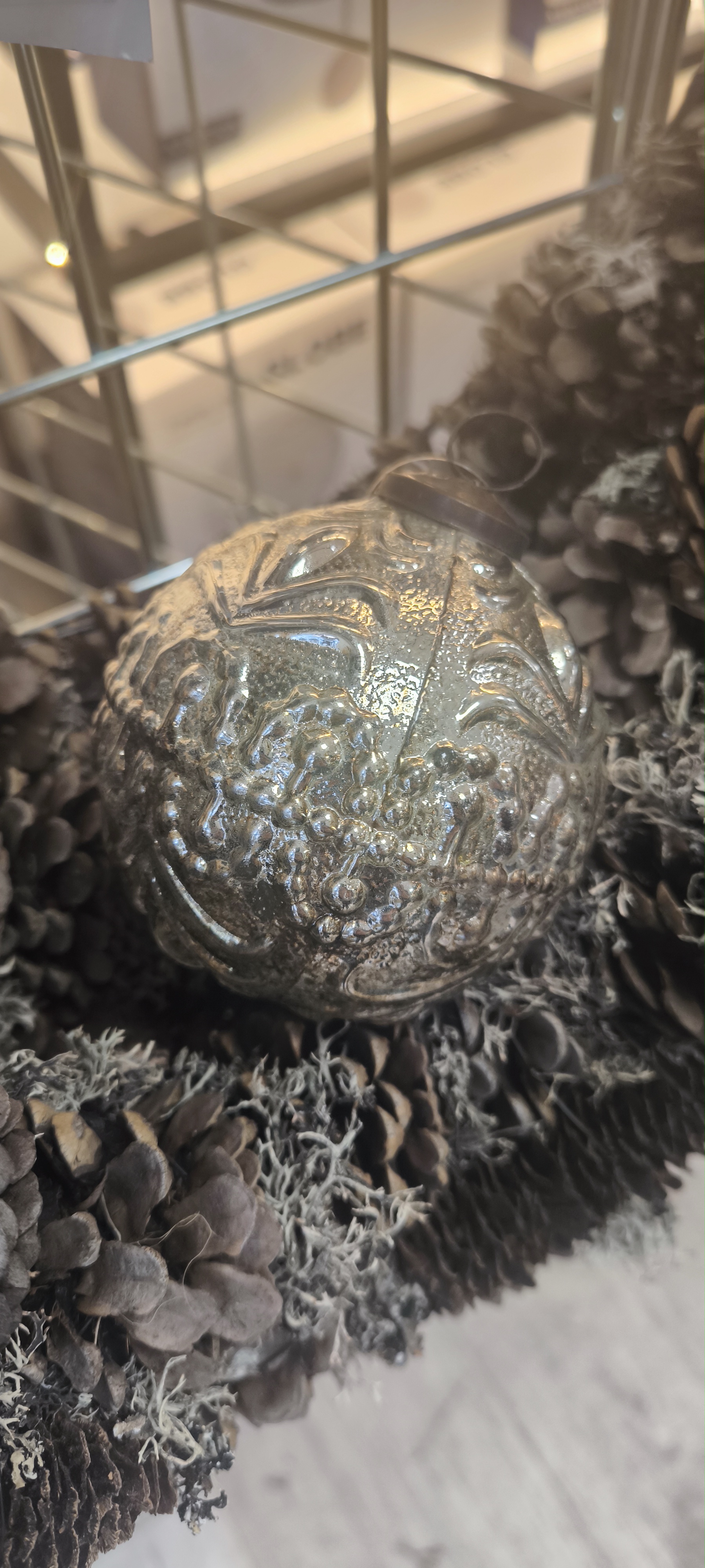 Diese edle Weihnachtskugel aus Glas verzaubert mit ihrem klassischen Vintage-Design und feinen, kunstvoll gearbeiteten Mustern. In einem warmen Altgold-Ton gehalten, strahlt sie zeitlose Eleganz und nostalgischen Charme aus.